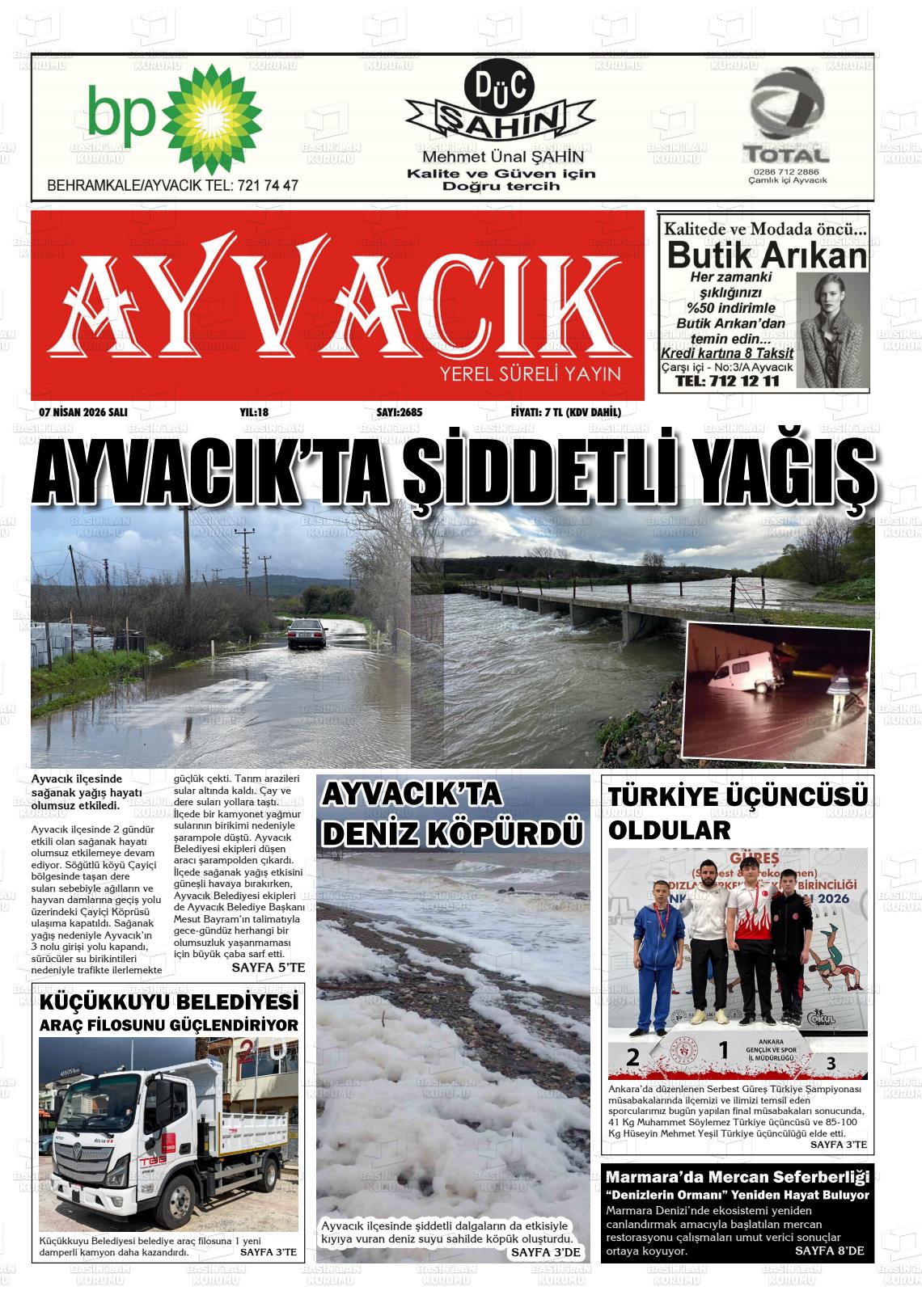 Çanakkale Yerel Gazeteleri 07 Nisan 2026, Salı Günü Manşeti