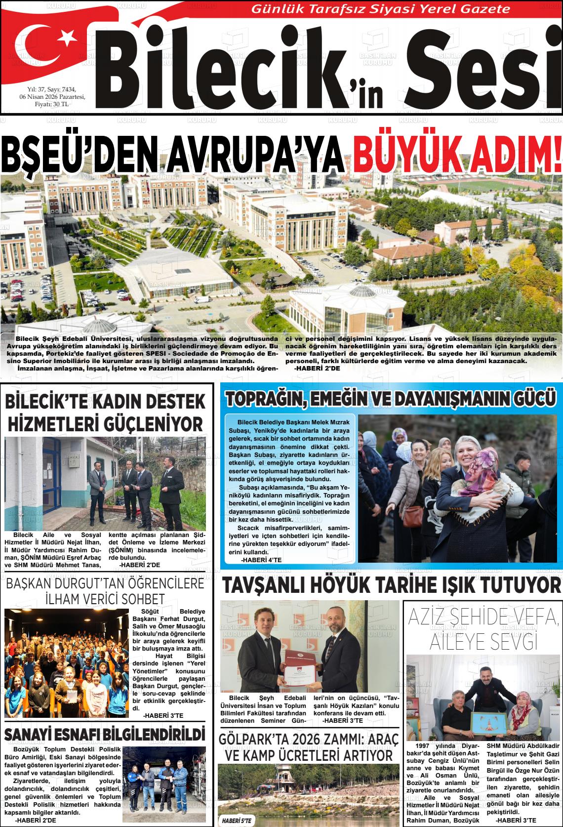 Bİlecİk Yerel Gazeteleri 07 Nisan 2026, Salı Günü Manşeti