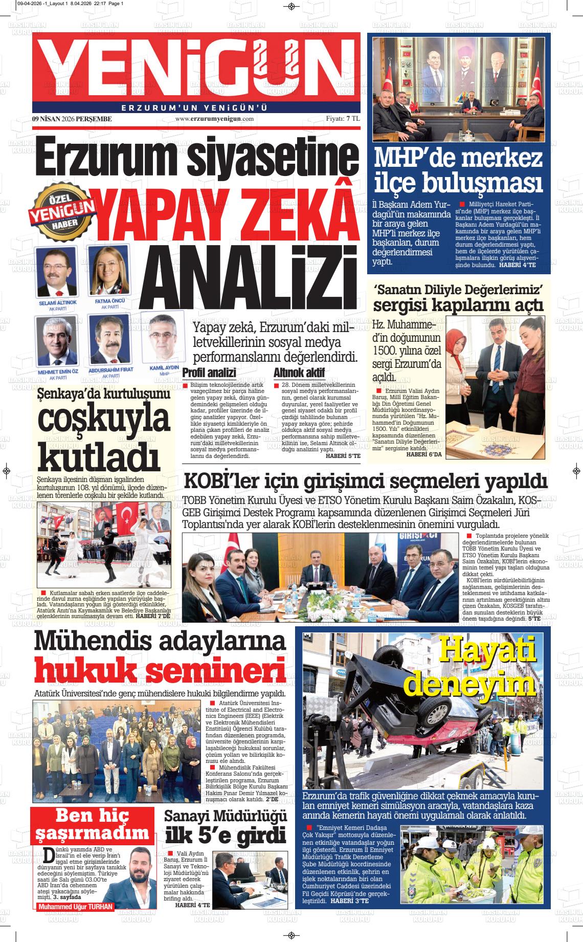 Erzurum Yerel Gazeteleri 08 Nisan 2026, Çarşamba Günü Manşeti