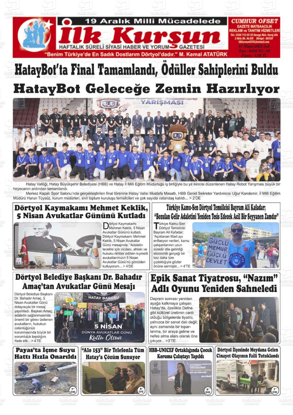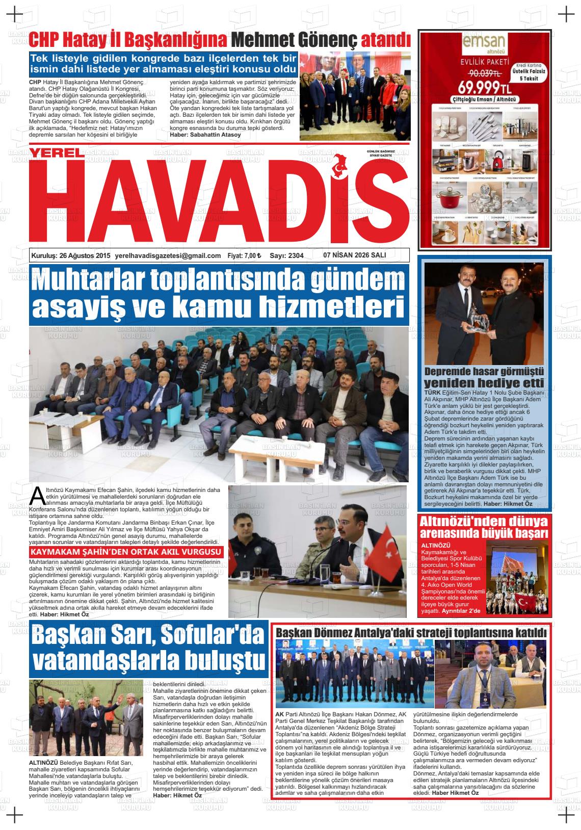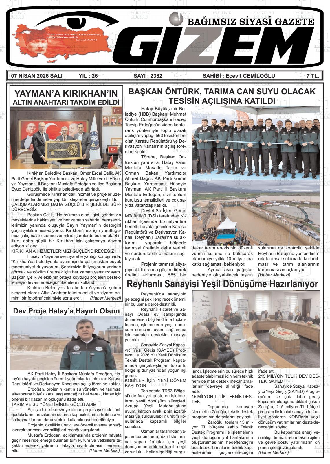 Hatay Yerel Gazeteleri 07 Nisan 2026, Salı Günü Manşeti
