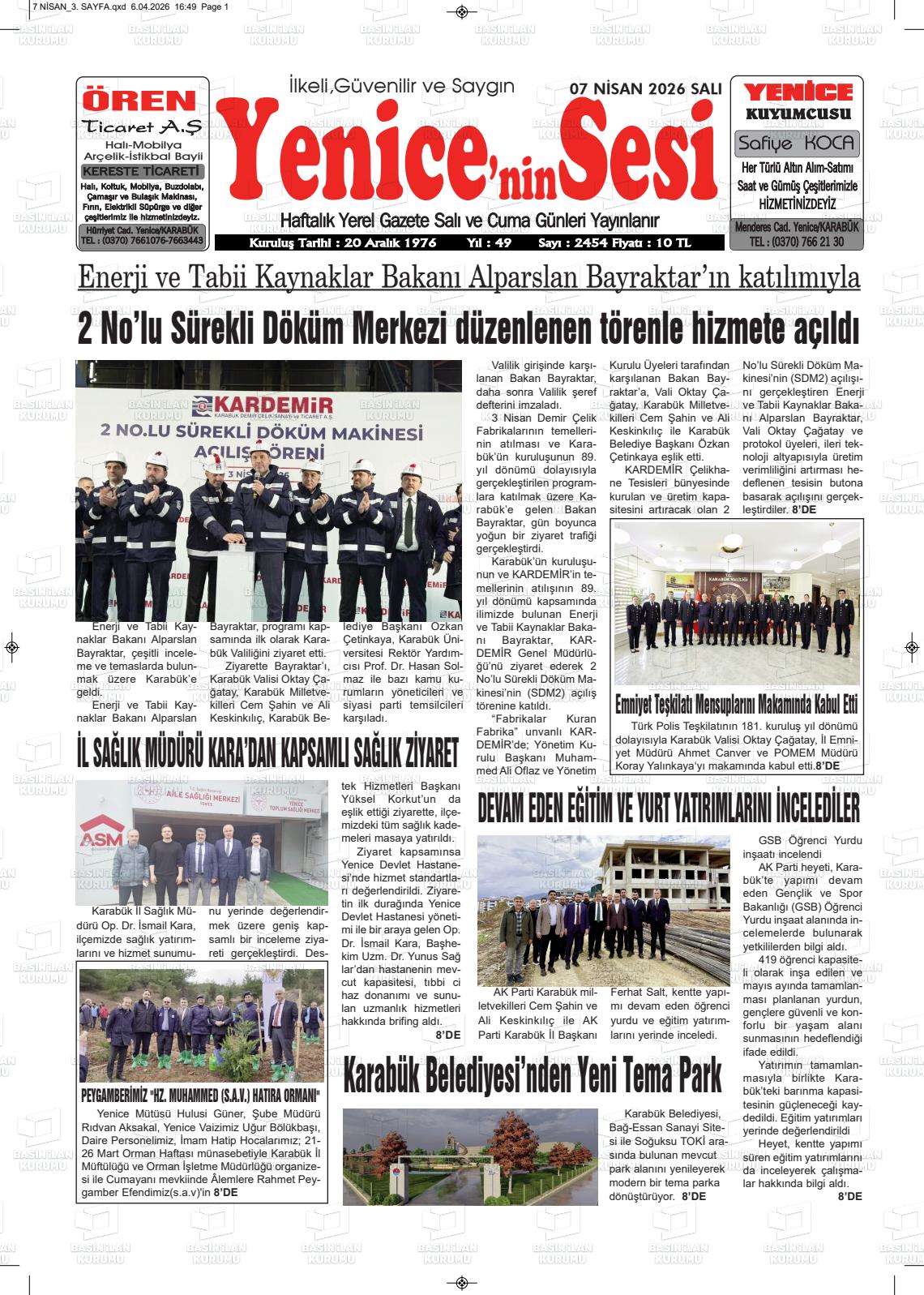 Karabük Yerel Gazeteleri 07 Nisan 2026, Salı Günü Manşeti