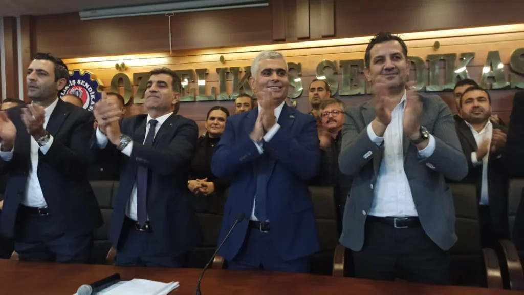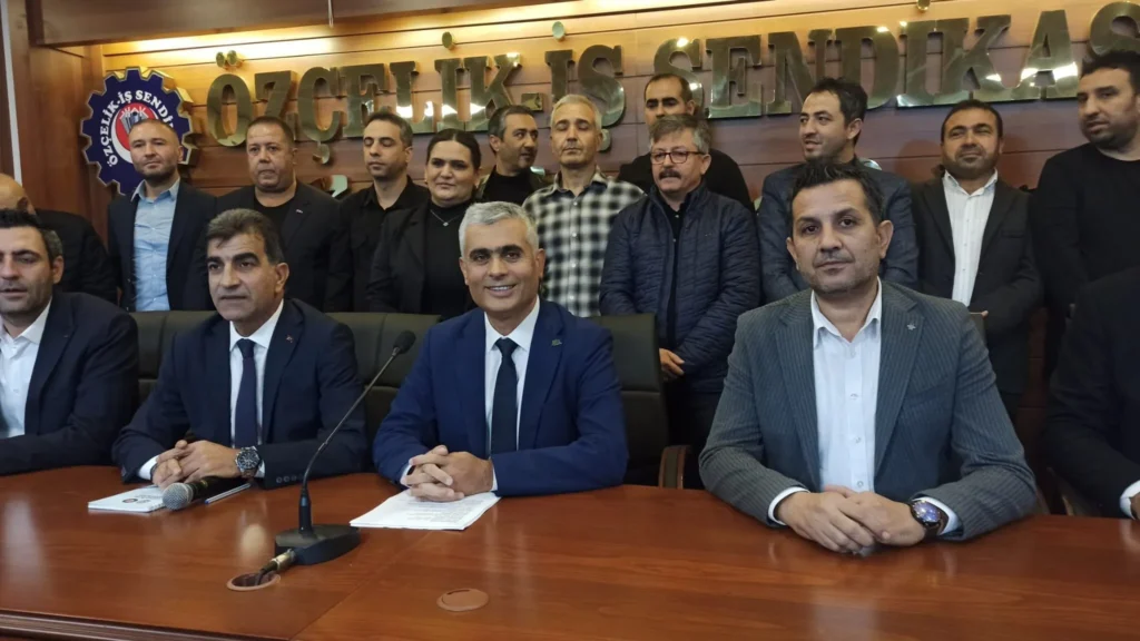 Özçelik-İş Sendikası İskenderun Şube Başkanı Mehmet Güngör, yaklaşan olağan genel kurul öncesi yeniden aday olduğunu duyurmak amacıyla sendika şube binasında basın toplantısı düzenledi.